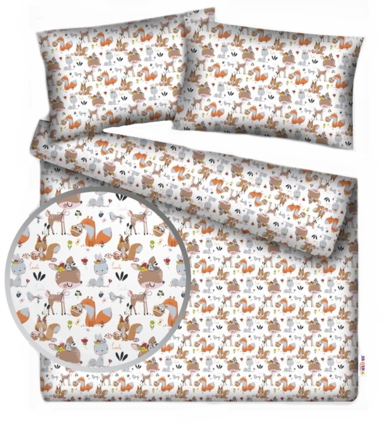 - Baby Nellys 2-dílné bavlněné povlečení - Pohádková zvířátka, bílá, vel. 140 x 200/70 x 90