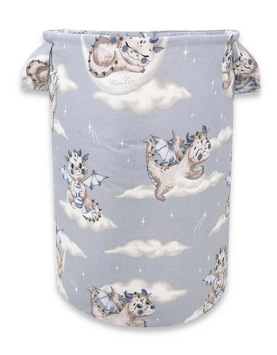 - Bavlněný koš na hračky, Dráček Mráček - modrá/šedá
