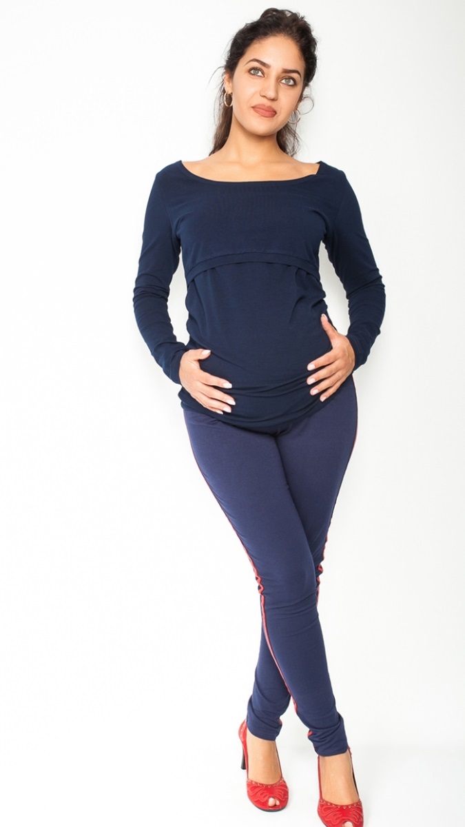 Be MaaMaa Těhotenské kalhoty s lampasem - granátové, vel. S