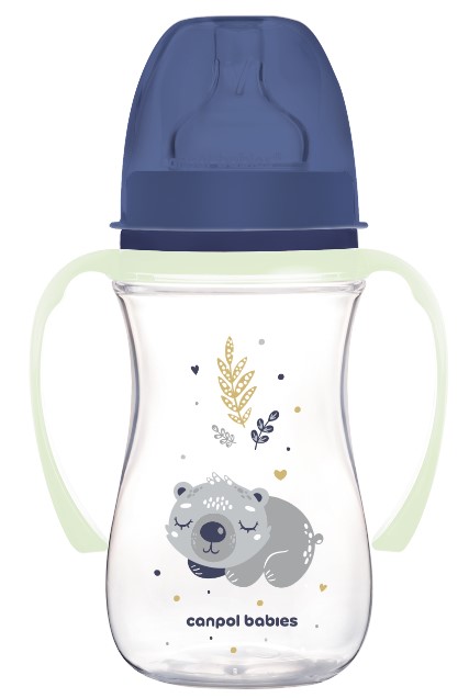 Antikolik. lahvička se širokým hrdlem a svítícími úchyty, Sleepy Koala, 240 ml - modrá