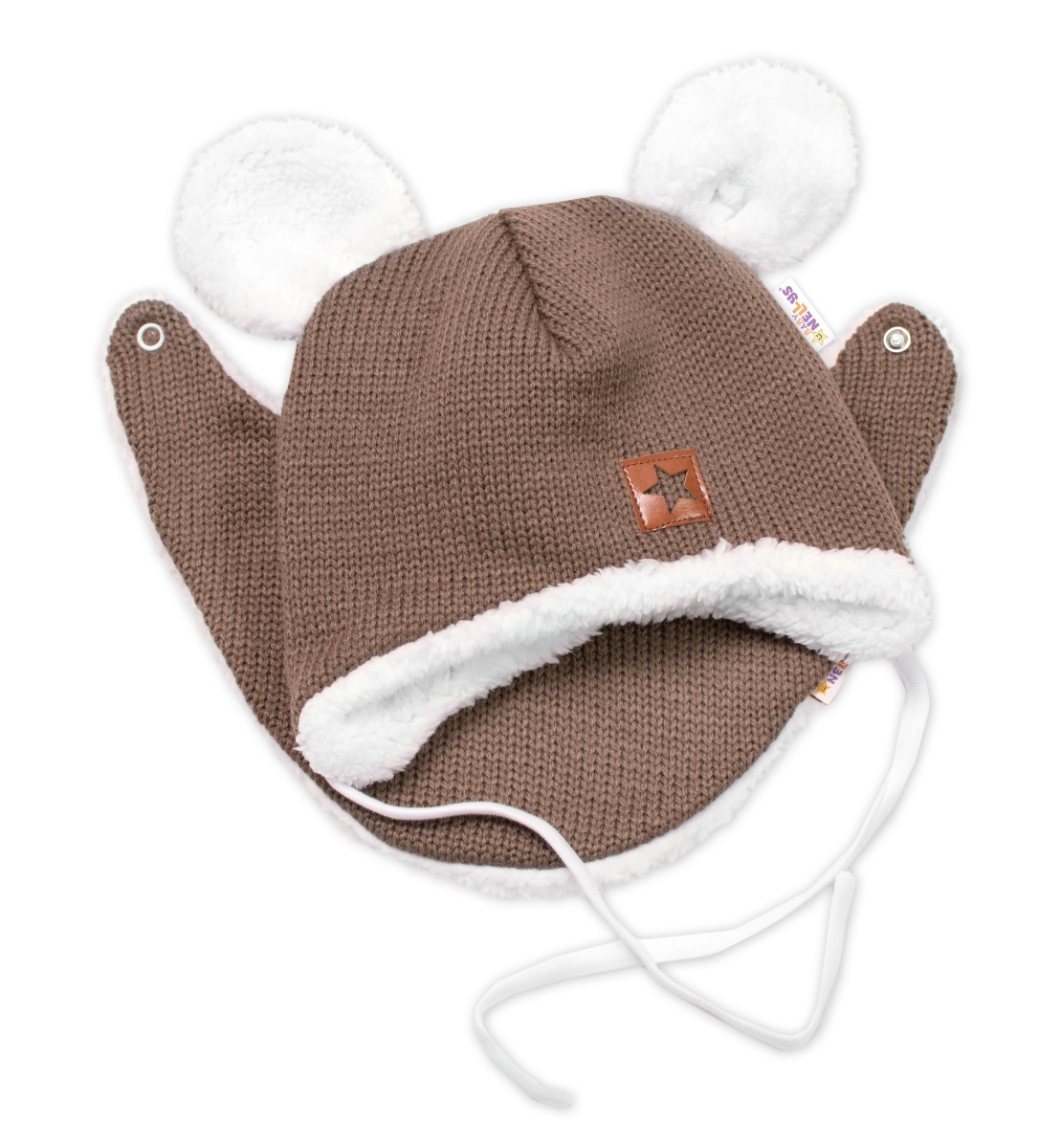- Baby Nellys Pletená zimní čepice s kožíškem a šátkem Star, hnědá, vel. 68/74
