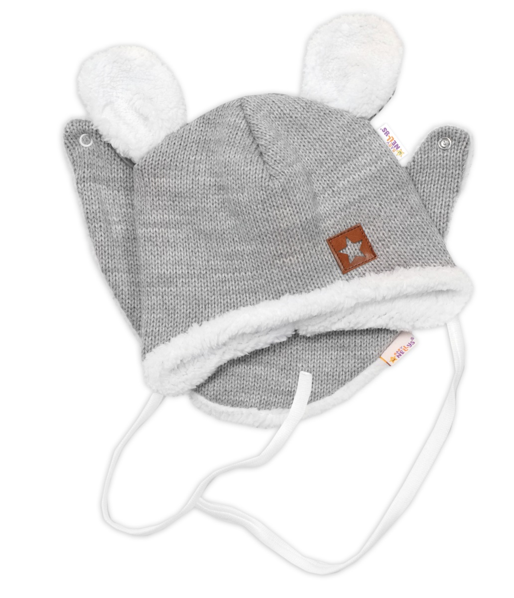 - Baby Nellys Pletená zimní čepice s kožíškem a šátkem Star, šedá, vel. 68/74