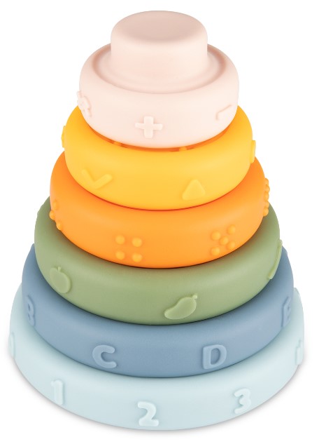 Senzorické pyramidové puzzle je klasická vzdělávací hračka, díky které si dítě procvičí manuální zručnost, paměť a představivost, ale i logické a strategické myšlení - jak postavit věž z rozházených prvků. Jednotlivé prvky budou skvělé i jako kousátka.