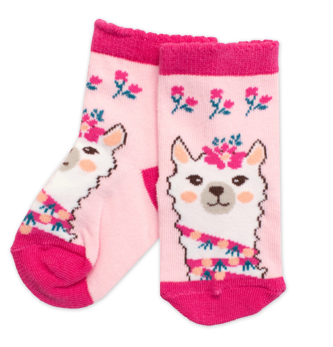 - Dětské bavlněné ponožky Lama - růžové, vel. 19/22