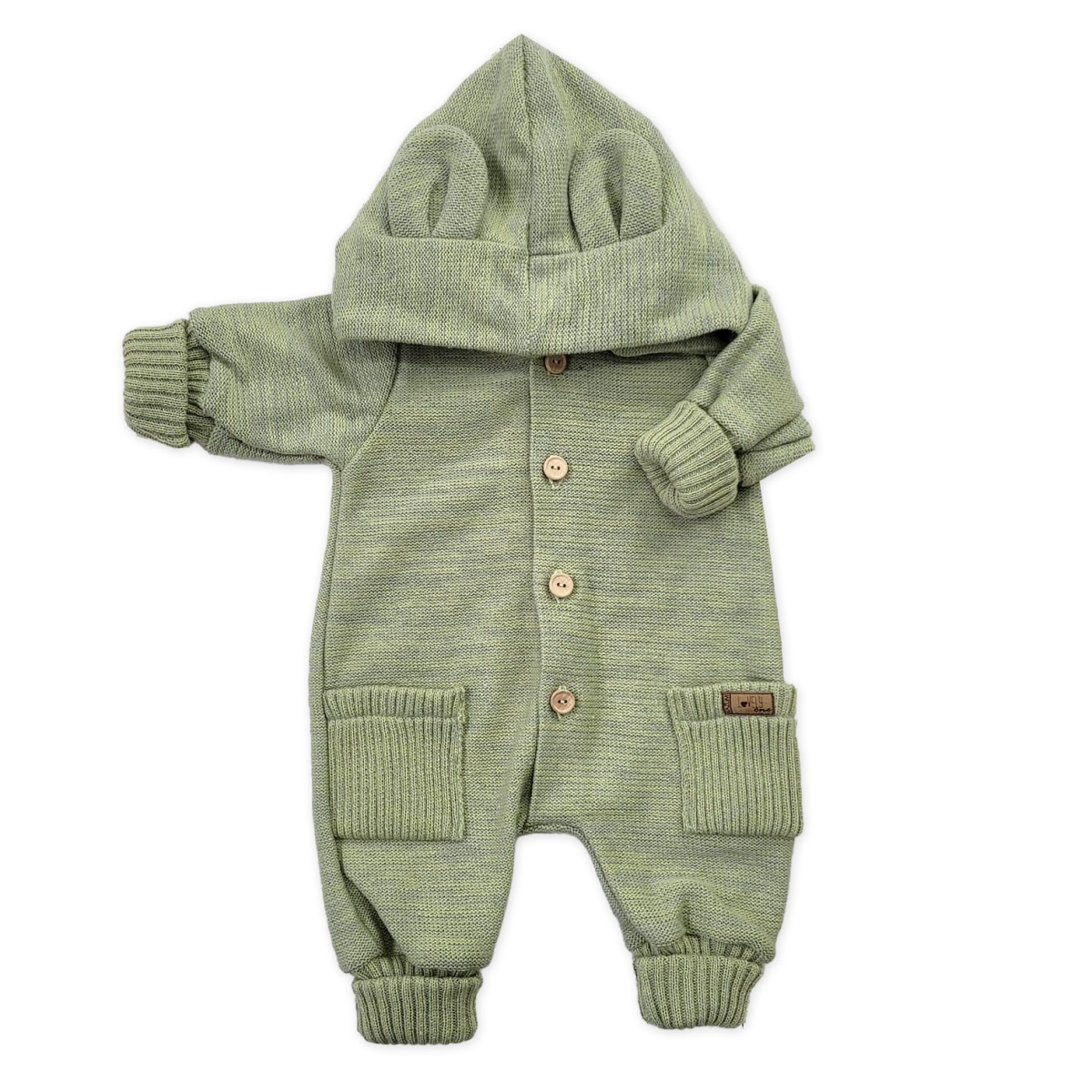 - Dětský pletený overálek s odepínací kapucí - olivový