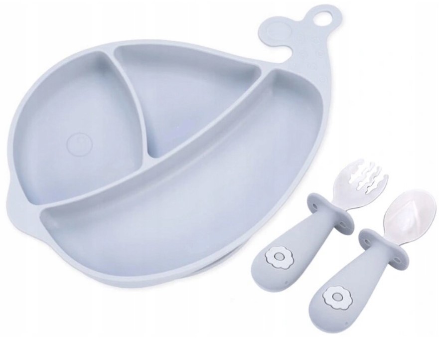 Skládá se ze silikonového talíře ve tvaru velryby a sady příborů (vidlička a lžíce) z nerezové oceli a silikonu. Příbory jsou vybaveny silikonovými rukojeťmi, které zabraňují nekontrolovanému sklouznutí lžíce nebo vidličky z rukojeti.
