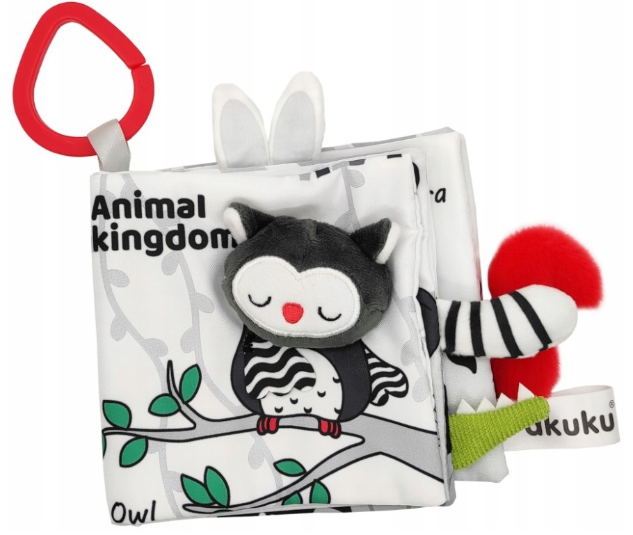 Najdete v ní materiály s různými texturami a vlastnostmi, jako je vrzání, chrastění a šustění a četné záložky. Hračka podporuje vývoj miminka od prvních dnů, stimuluje zrak díky speciálně použitým barvám, které miminko vidí od narození. Dokonale stimuluje rozvoj zrakově-sluchové a pohybové koordinace dítěte. Je ideální pro učení se chápat a objevovat zajímavé zvuky a tvary. Praktický háček umožňuje připevnit hračku ke kočárku nebo postýlce. Je jemný a příjemný na dotek.
