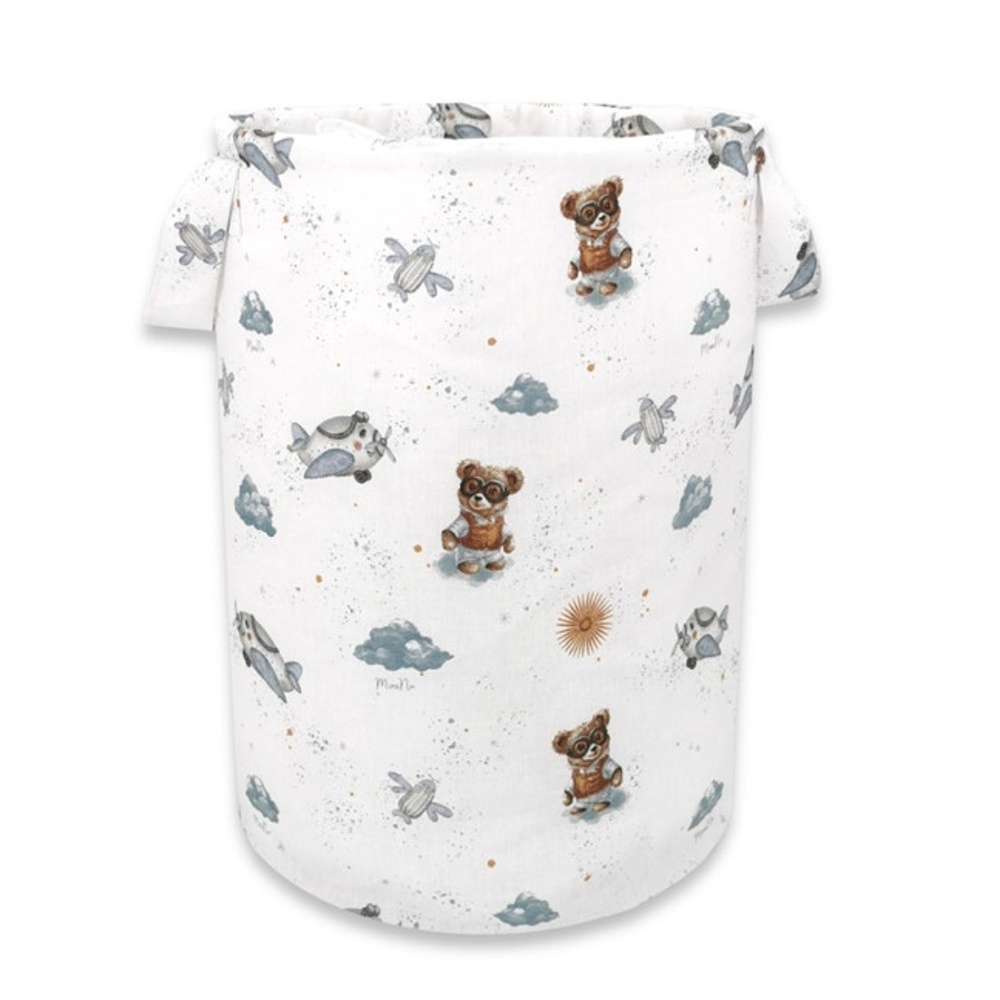 - Koš na hračky, bavlna, 50x35cm, Meďa pilot - bílá, modrá