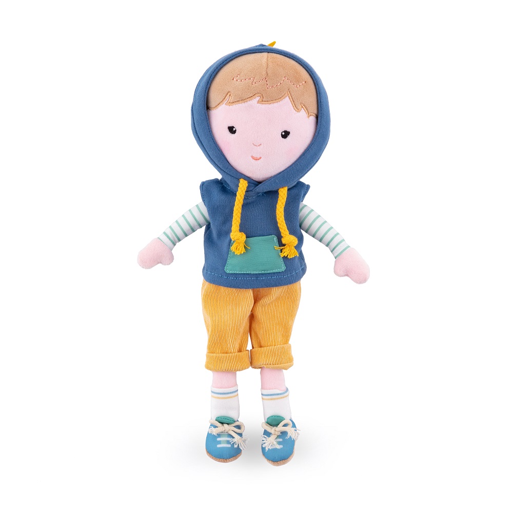 Panenka Max – hravý kamarád pro každé dítě Max je roztomilá látková panenka plná energie a nápadů. Miluje dobrodružství, hry a objevování světa. Se svou oblíbenou mikinou s kapucí ve stylu dinosaura je vždy připraven na nové lumpárny. I když je Max malý nezbedník, zároveň je skvělý parťák na mazlení i odpočinek. Pomáhá dětem cítit se bezpečně a zpříjemňuje usínání. Podporuje dětský rozvoj Panenka rozvíjí fantazii, kreativitu i jemnou motoriku. Různé tvary a materiály stimulují smysly dítěte. Hebký a bezpečný Vyroben z příjemných materiálů šetrných k dětské pokožce. Ideální na doma i na cesty. Snadná údržba Lze prát ručně při 30 °C. Hlavní výhody: Vhodný již od narození Měkký a příjemný na dotek Ideální na hraní i usínání Podporuje fantazii a rozvoj dítěte Lehký – vhodný i pro nejmenší děti Materiál: Panenka: 100% polyester Oblečení: 100% bavlna Rozměry: 14 × 34 cm Péče: Ruční praní na 30 °C Bezpečnostní upozornění: Používejte pod dohledem dospělé osoby. Obal není hračka, odstraňte ho z dosahu dítěte.