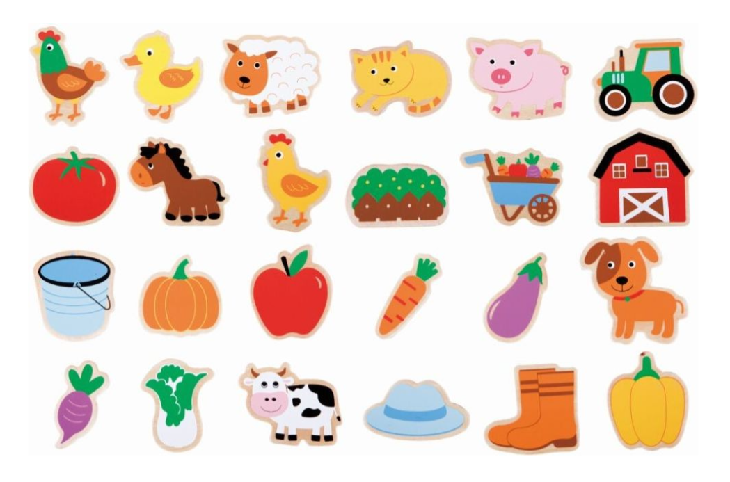 - Lelin Dřevěná magnetická sada - Farma, 24ks