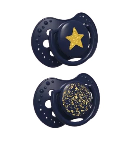 Unikátní design kolekce Stardust - zdobení v podobě zlatého třpytu, který připomíná hvězdné nebe. Kolekce se pyšní dynamickým dudlíkem LOVI ve velikosti 3-6 m, který byl vytvořen ve spolupráci s neurologopedy s cílem zajistit přirozený a zdravý vývoj zubního patra, zubů a dásní dítěte. Gumička dudlíku se dynamicky přizpůsobuje sání dítěte, nenarušuje sací reflex.