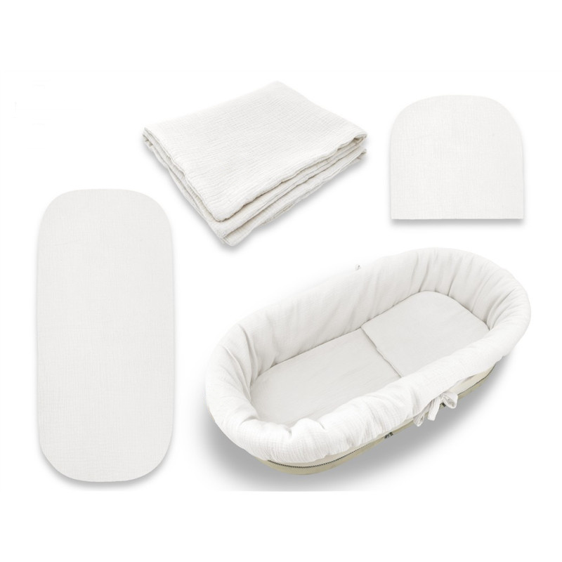 Mušelínová sada do hluboké korby kočárku 4v1 — mantinel, matrace, polštářek a přikrývka | 100 % bavlna | Baby Nellys.
