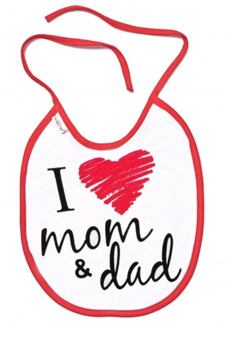 Nepromokavý bryndáček, 24 x 27 cm - I love mom & dad, Baby Nellys - červený