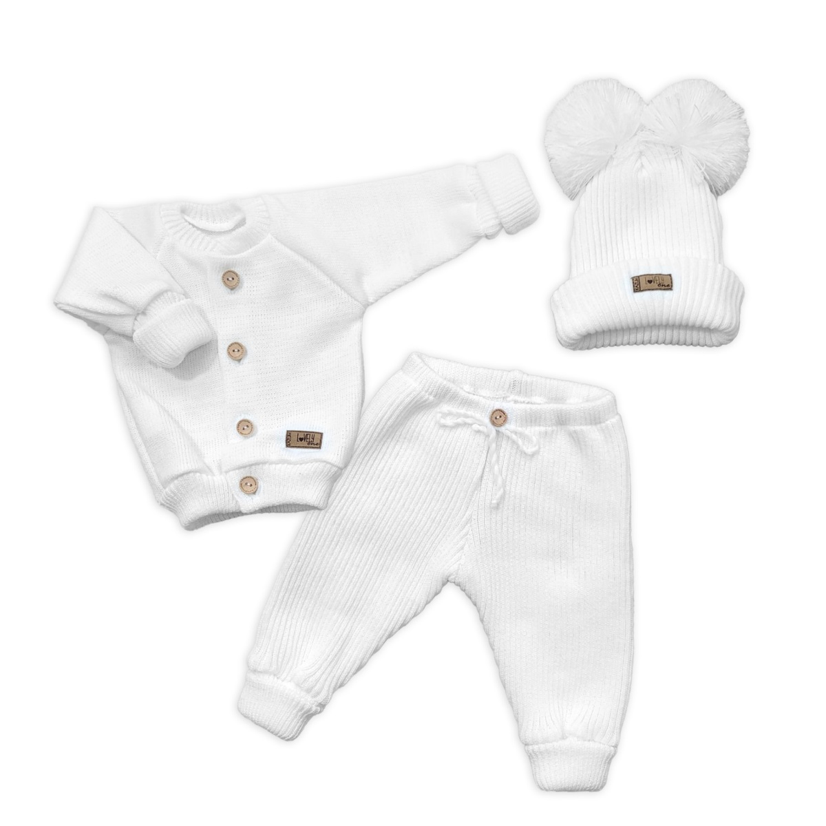 Svetřík má zapínání na knoflíčky. Zaručuje pohodlí a pohodlí při oblékání. Perfektní pro každé roční období. Dlouhé manžety na rukávech umožňují svetříku růst s dítětem. Kalhoty mají velmi elastický pás, díky kterému se kalhoty přizpůsobí každé postavě a prodloužené manžety ve spodní části navíc umožní kalhotám růst s dítětem.