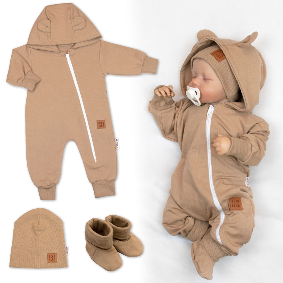 - Rostoucí teplákový overal pro miminko, čepice, botky, 3D, Nature - karamelová