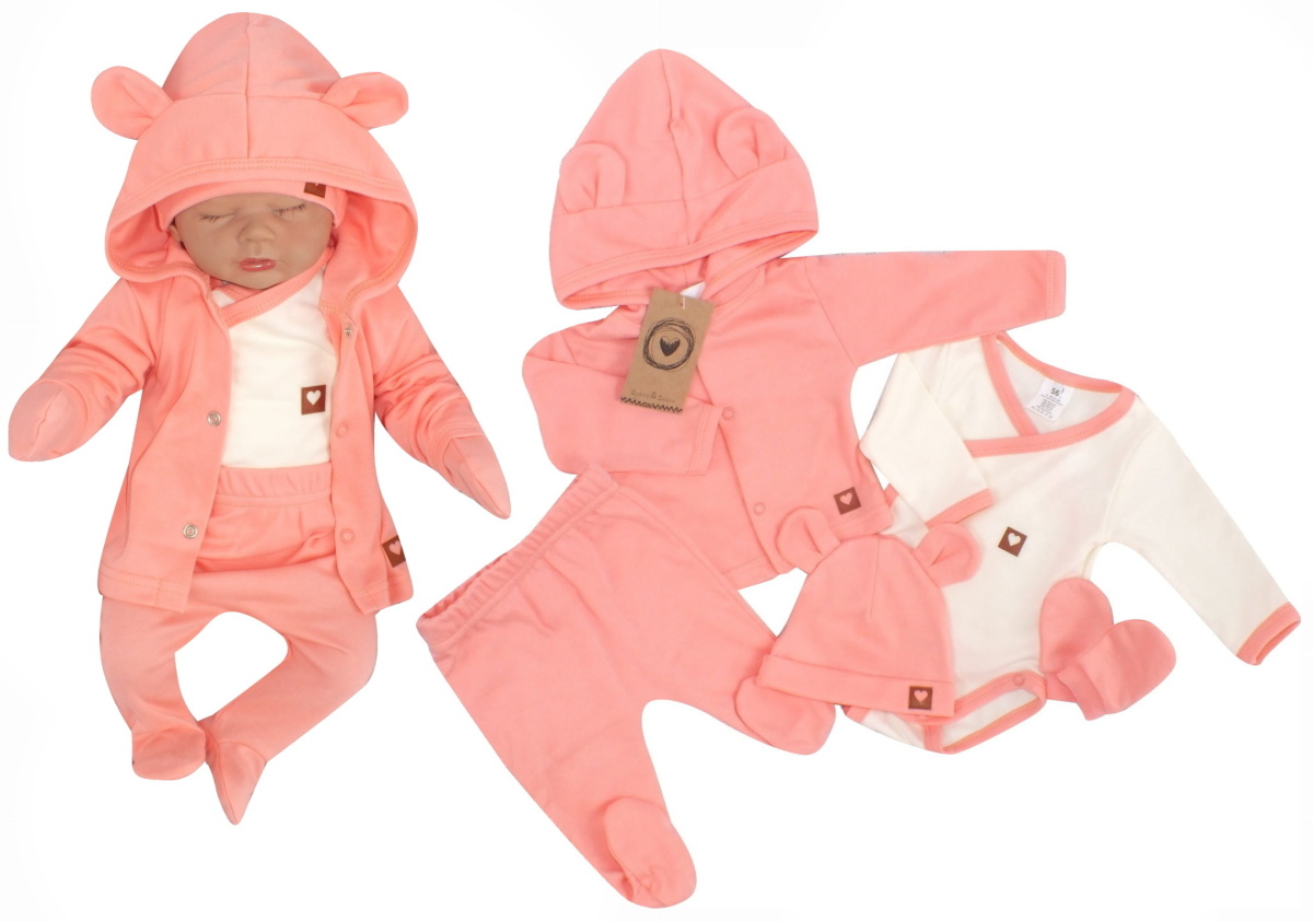 - Sada do porodnice 5D, body, polodupačky, kabátek, čepička, rukavičky - meruňka, vel. 62