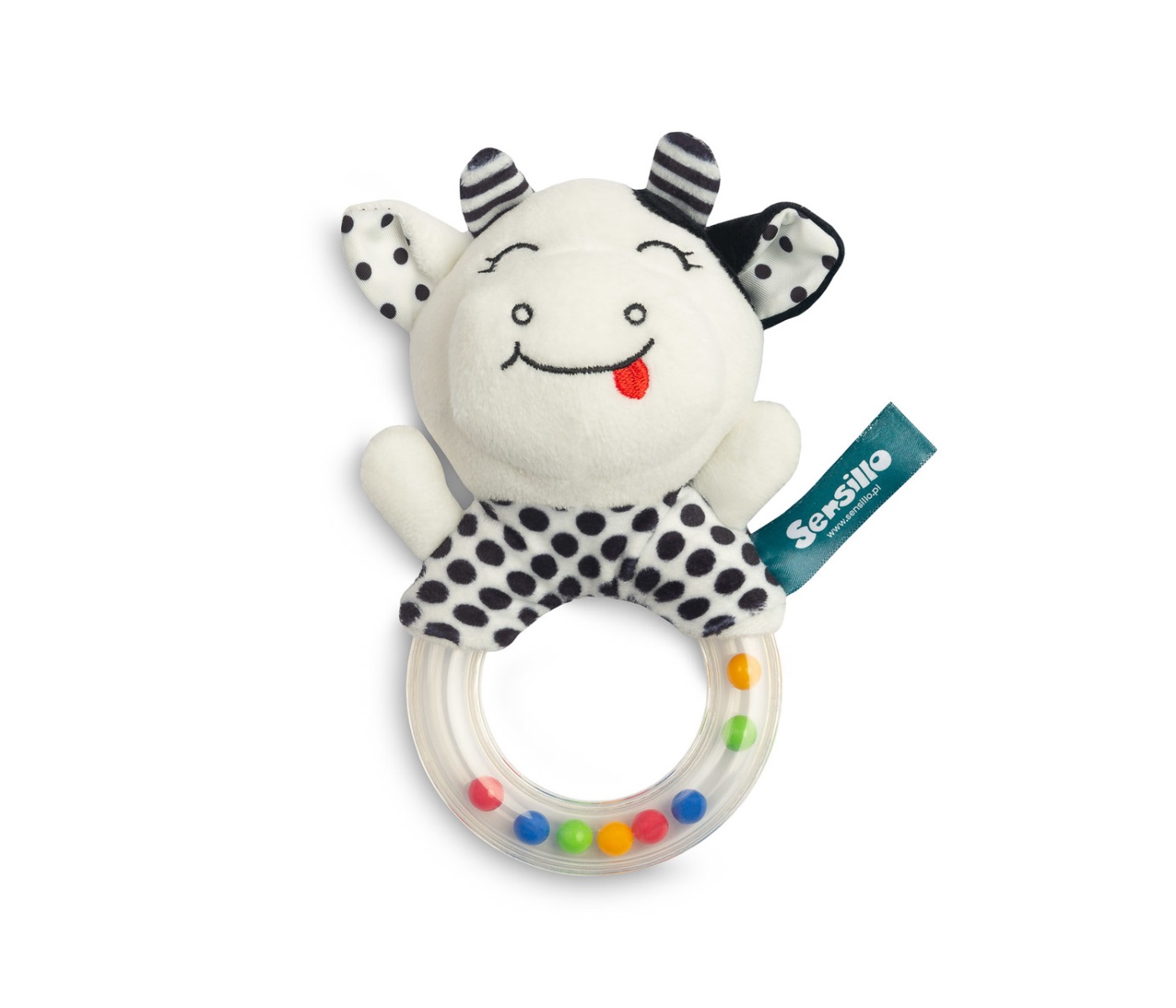 Senzorické chrastítko v kontrastních odstínech černé a bílé bylo vytvořeno s ohledem na stimulaci zraku a rozvoj smyslového vnímání vašeho miminka.