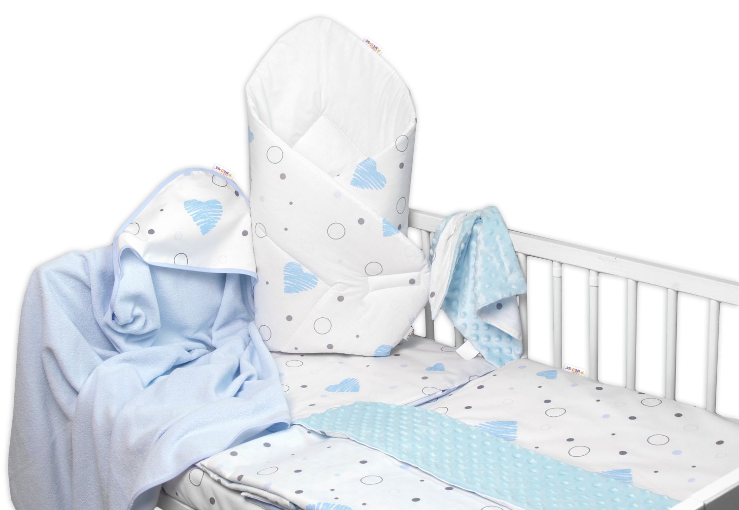 - Výhodná sada do postýlky 6D, I love Boy, Baby Nellys 135x100cm, bílá/modrá