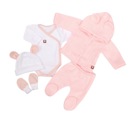 Z&Z 5-dílná kojenecká soupravička pletená do porodnice - růžová, bílá