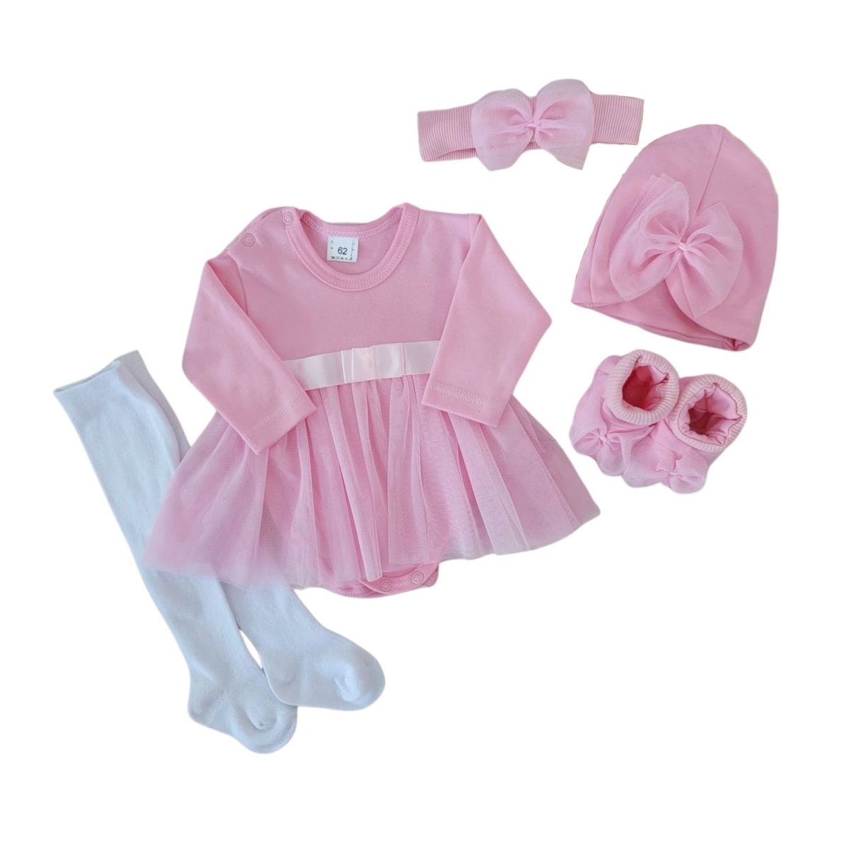 Z&Z 5-dílná soupravička sukničkobody, punčochy, čepička, čelenka, botky - růžová, vel. 80