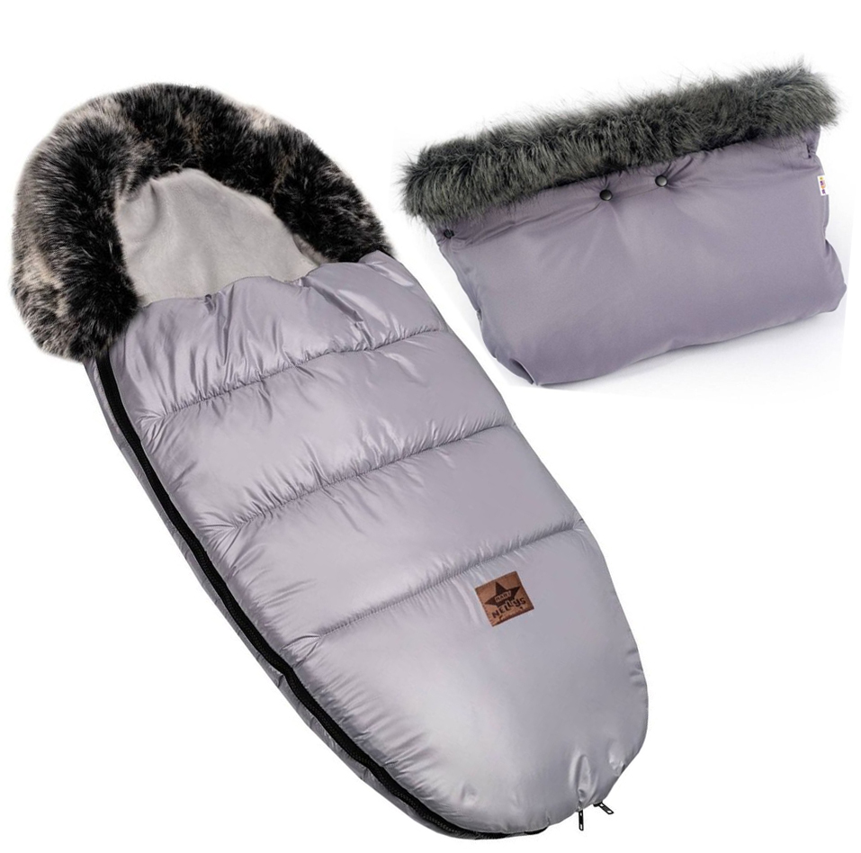 - Zimní fusak s kožešinou + rukávník zdarma, Baby Nellys, 50 x 100cm, šedý